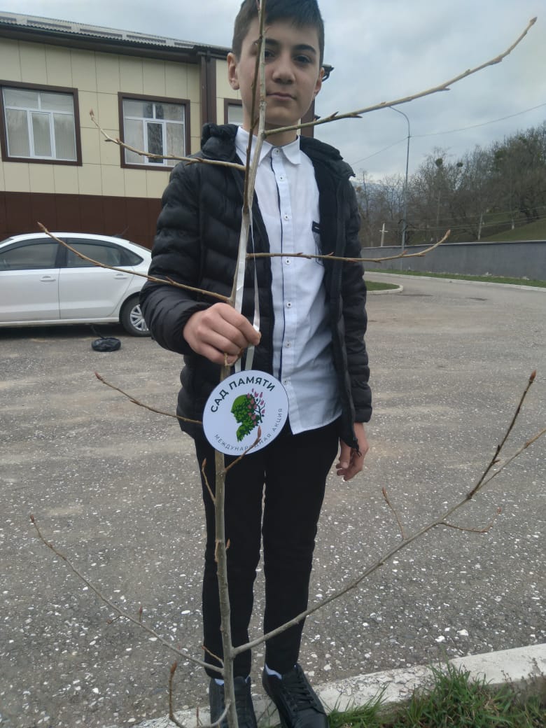 Всероссийская акция "Сад Памяти" в МБОУ ООШ с.Оси-Юрт. В рамках реализации федерального проекта "Социальная активность" национального проекта "Образование" учащимися 9 класса 12 апреля 2022 г. была организована и проведена Всероссийская акция "Сад Памяти"