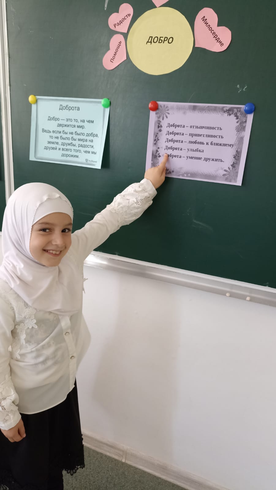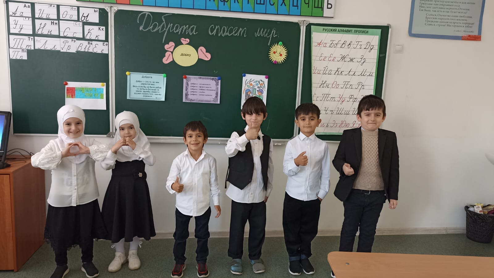 Согласно плановым мероприятиям по добровольчеству в 1 классе МБОУ ООШ с.Оси-Юрт проведён классный час " Доброта спасёт мир "