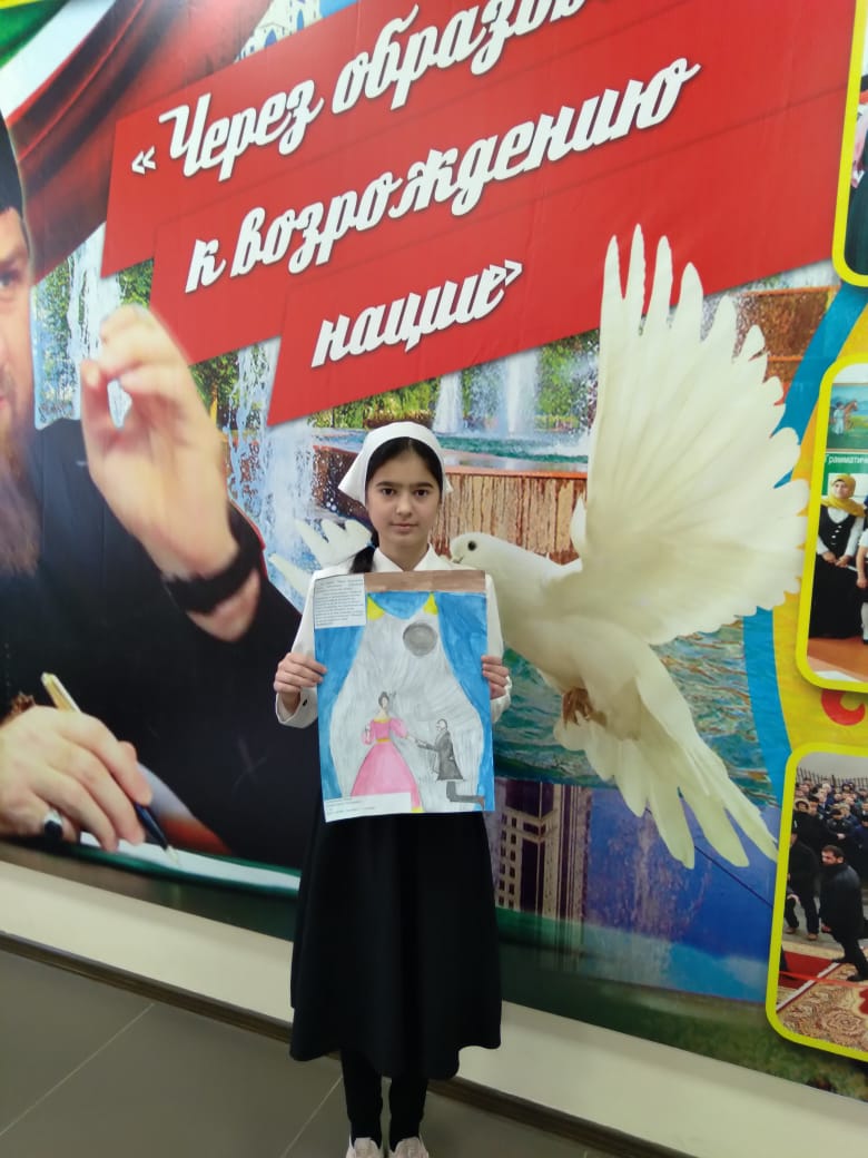 Учащиеся 5,6,7 классов, Межиева Аминат, Рахаева Аминат и Межиева Фариза, подготовили рисунки для участия в региональном конкурсе рисунков " Литературный вернисаж", организатором которого является ГБУ " Институт развития образования ЧР".