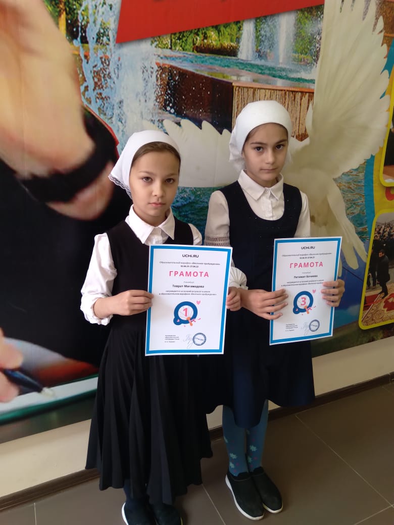 Учащиеся 4 класса ,Магамадова Товрат и Бочиева Петимат, приняли участие в онлайн-олимпиаде " Весеннее пробуждение " на платформе Учи.ру и были награждены грамотами.