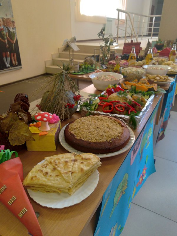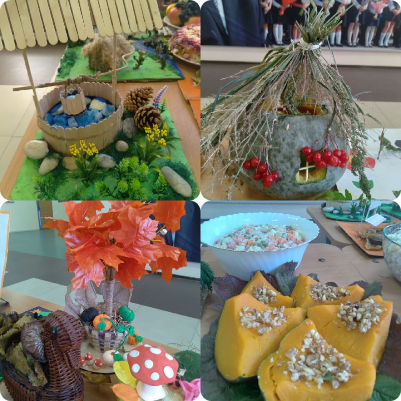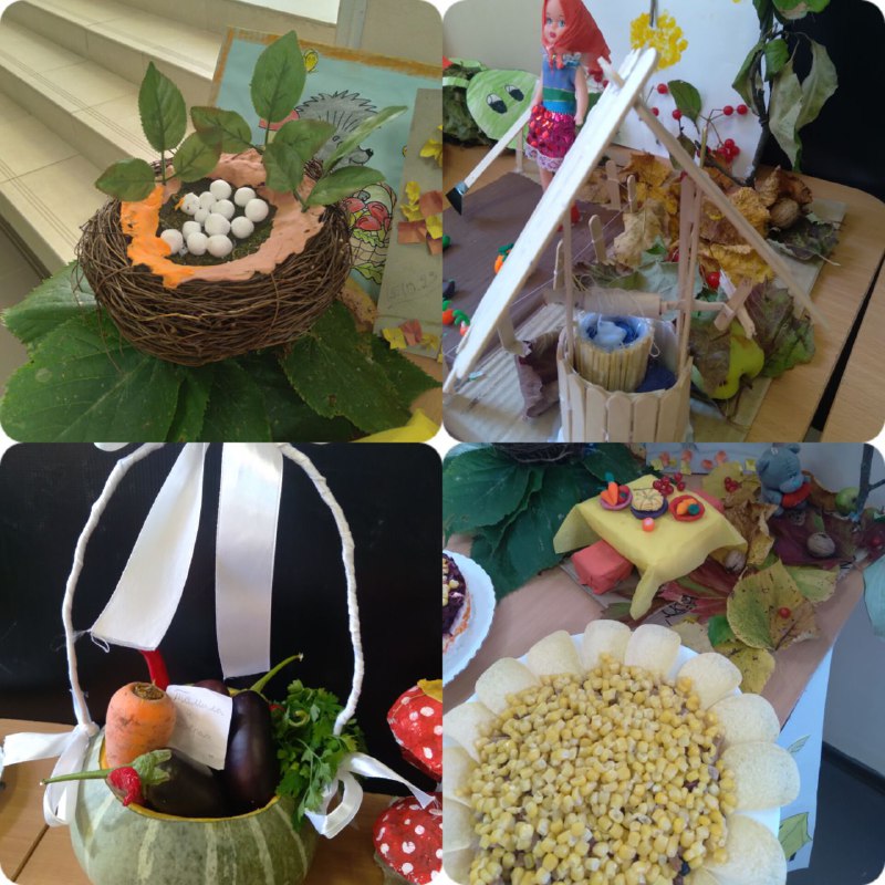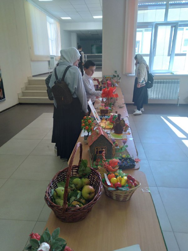 13 октября 2023 г. учащиеся МБОУ ООШ с.Оси-Юрт организовали выставку " Дары осени"