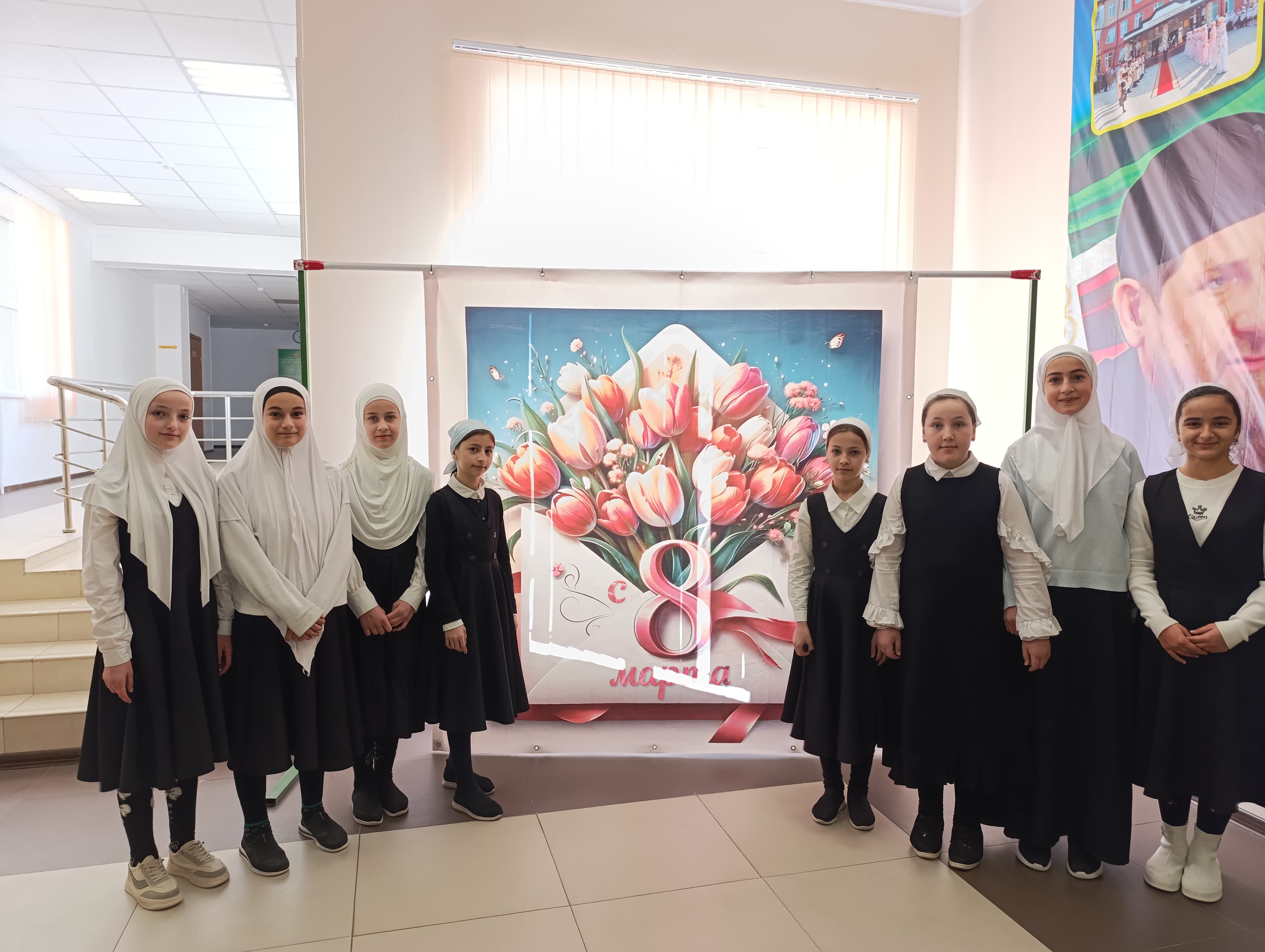 В МБОУ ООШ с. Оси-Юрт состоялись мероприятия, посвященные Международному женскому дню 8 марта:проведены классные часы, конкурс рисунков, конкурс "Узнай себя, мамочка!", нарисованы стенгазеты, оформлена фотозона.